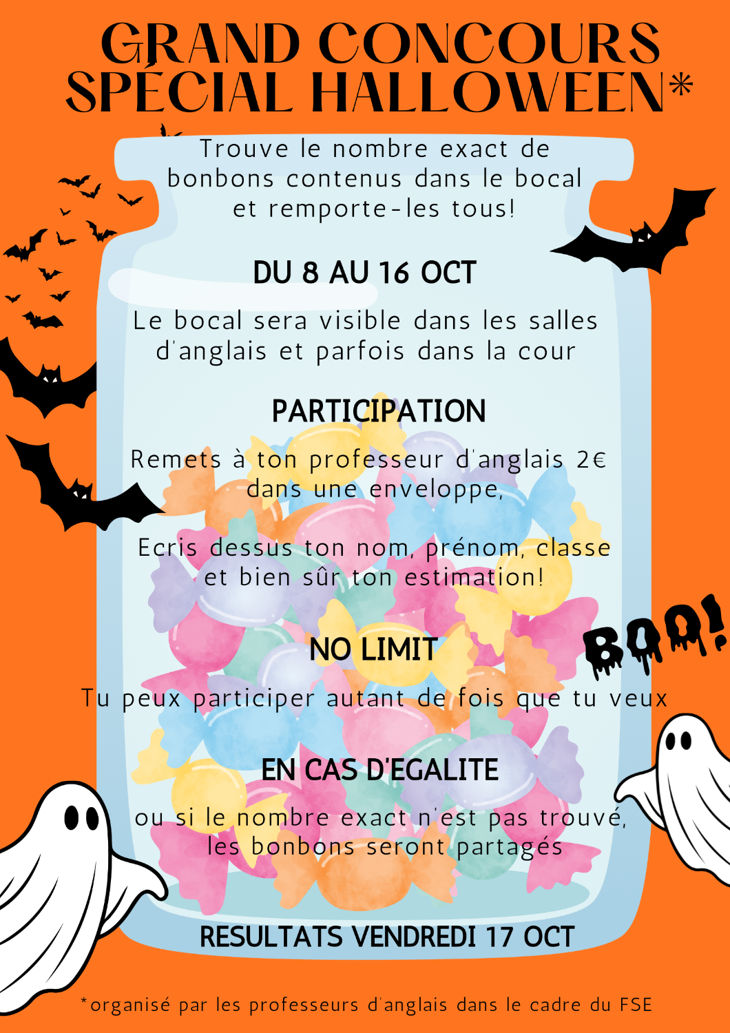 Grand Concours Spécial Halloween organisé par les professeurs d'anglais dans le cadre du FSE.